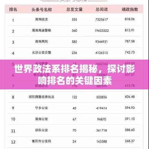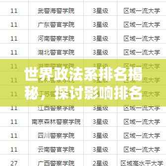 政法系作为高等教育的重要组成部分,对于培养法律人才、推动法治建设具有重要意义,全球范围内,各国家和地区的政法系实力参差不齐,各具特色,本文将对世界政法系排名进行介绍,并分析影响其排名的关键因素。