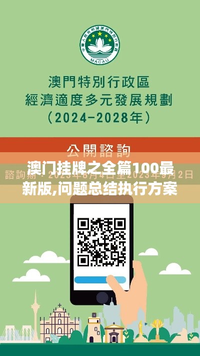 随着经济全球化的不断推进,澳门作为特别行政区在区域发展中扮演着越来越重要的角色。为了更好地适应国际标准,促进本地经济和社会的全面发展,澳门特区政府推出了"澳门挂牌之全篇100最新版"。本文旨在通过对政策文件的解读与执行方案的分析,提出具体的问题总结和解决方案,确保政策的有效实施。我们将重点讨论"澳门挂牌之全篇100最新版,问题总结执行方案_VR9.972"的核心内容和执行细节,对于各个部门和个人而言,了解和遵循这些政策至关重要。