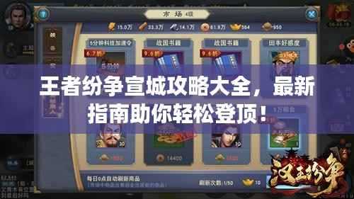 随着王者纷争的热度不断升温,众多玩家纷纷投身于这场激动人心的游戏中,宣城作为游戏内的一个重要地点,自然成为了众多玩家关注的焦点,本文将为大家带来最新的宣城攻略,帮助大家在游戏中更好地探索和发展。