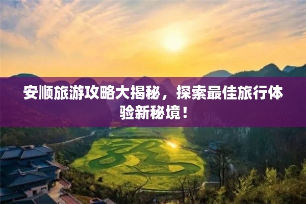 安顺,贵州省的一个美丽城市,以其独特的自然风光和丰富的民族文化吸引着无数游客,本文将为你提供近期的安顺旅游攻略,帮助你充分了解和享受这个地方的独特魅力。