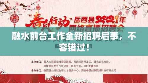 此次招聘融水前台工作是为了满足公司业务发展的需求,我们希望通过招聘到合适的人才,共同推动公司的发展,我们期待有识之士加入我们的团队,共同创造美好的未来,我们承诺为员工提供优厚的待遇和广阔的发展空间,让每一位员工都能在公司找到自己的定位,实现自己的价值,我们相信,只要我们一起努力,就能让公司更上一层楼,我们期待着您的加入!