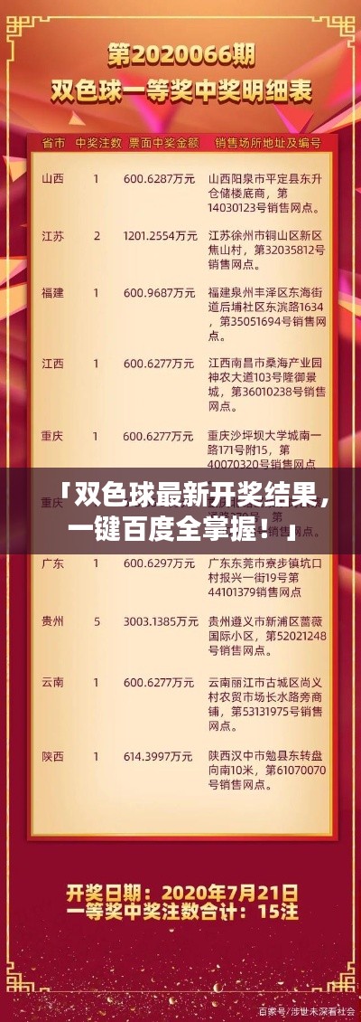 随着互联网技术的发展和普及,越来越多的人开始关注彩票开奖情况,双色球作为中国福利彩票的一种,备受广大彩民的喜爱,本文将通过百度搜索,为大家介绍一下双色球的开奖情况。