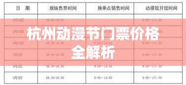 杭州动漫节作为国内外知名的动漫盛会,每年都吸引着大量动漫爱好者和业界人士前来参加,本文将详细介绍杭州动漫节的门票价格,帮助广大动漫迷们更好地了解和规划自己的行程。