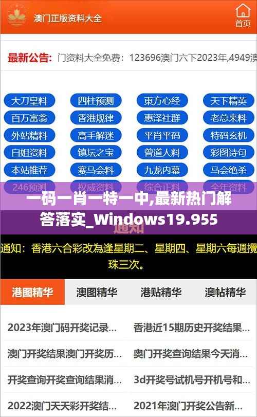 在瞬息万变的信息技术领域,澳门特别行政区紧密跟随全球的发展步伐,不断更新其政策文件,以确保信息安全和社会发展的同步性。近期,关于“一码一肖一特一中,最新热门解答落实_Windows19.955”的相关政策文件,成为了澳门政府工作的重点。以下,我们将详细解读这些政策的实际影响和具体落实情况。