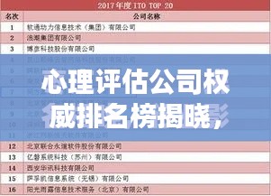 随着社会的快速发展,心理健康问题日益受到人们的关注,心理评估作为心理健康领域的重要组成部分,其专业性和权威性尤为重要,本文将探讨心理评估公司的排名,以供参考和借鉴。