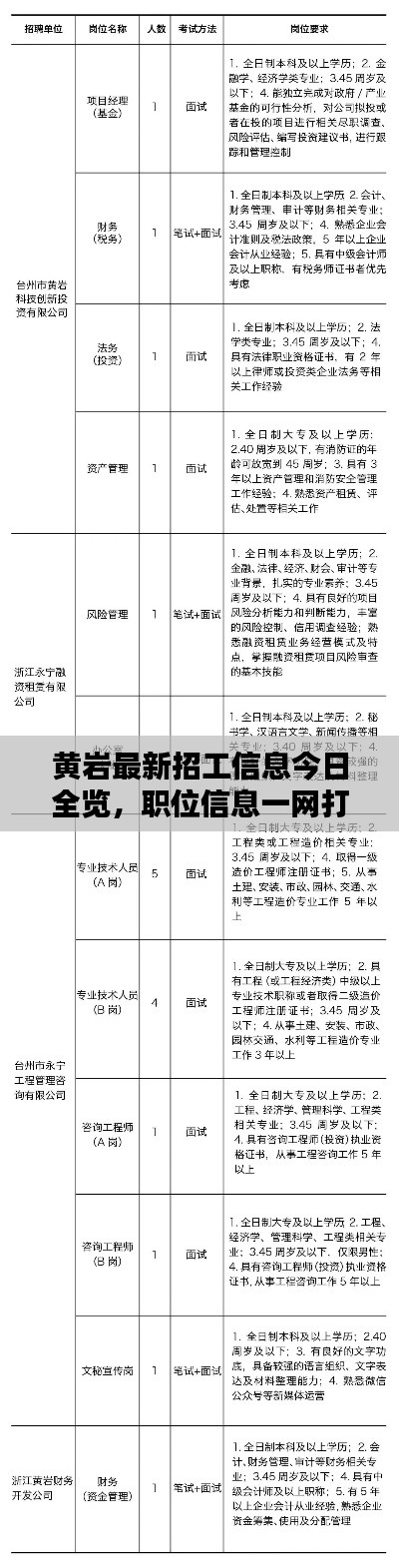 转载请注明来自安平县港泽丝网制造有限公司,本文标题:《黄岩最新招工信息今日全览,职位信息一网打尽》