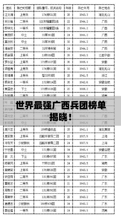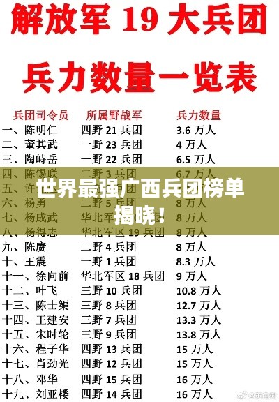 广西,这片充满活力和潜力的土地,自古以来就是人才辈出的地方,我们要探讨的是广西的兵团,其在各方面的卓越表现,特别是在某些领域的突出实力,使得他们赢得了世界的关注,成为了公认的最强兵团之一,我们将深入探讨世界最强广西兵团的排名及其背后的原因。