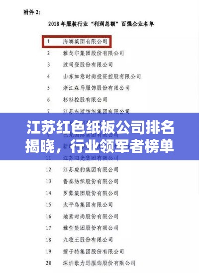 江苏,这片繁荣富饶的土地,不仅是中国的经济大省,也是众多产业蓬勃发展的热土,在众多的产业中,红色纸板行业也在这里取得了长足的发展,本文将为您详细介绍江苏红色纸板公司的排名,带您了解这一行业的前沿动态和企业风采。