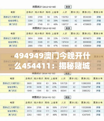 在澳门这座享誉全球的东方拉斯维加斯,每晚的赌城游戏之夜都吸引着无数游客的目光。今天,我们将深入探索赌城游戏之夜的热点话题,带您领略494949澳门今晚开什么454411的奥秘,揭开赌城风光无限的面纱。