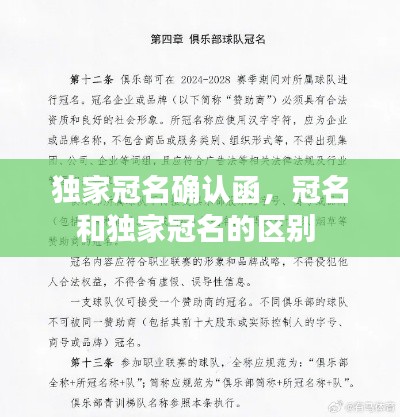 独家冠名确认函是一种正式的文件,通常由赞助商或品牌发送给被赞助的机构或活动主办方,用以确认双方就独家冠名权达成的一致协议。以下是一篇符合要求的独家冠名确认函文章。