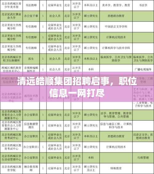 清远皓顺集团作为一家多元化发展的企业,近年来在各个领域均取得了显著的成绩,公司始终坚持以人才为核心,视员工为企业发展的宝贵资源,为了更好地适应市场变化和业务拓展,清远皓顺集团现面向社会广泛招募各类优秀人才。