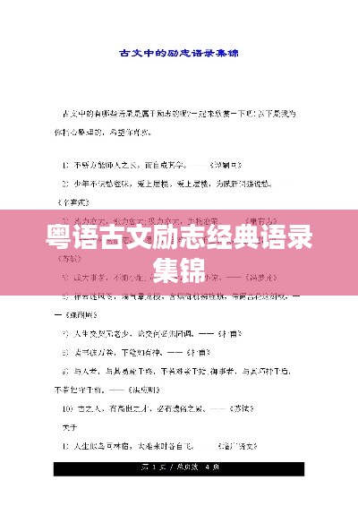粤语,作为中国传统文化的一部分,承载了丰富的历史与文化底蕴,古文中,不乏许多励志语录,激励着一代代人砥砺前行,以下为你呈现粤语古文励志语录大全,愿这些经典语句能为你带来力量与启示。