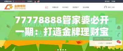 通过参与"77778888管家婆必开一期:打造金牌理财宝典"的实践活动,大家不仅能够学会理财的技巧,还能在实际操作中进一步丰富自己的理财经验,为实现财富的增长奠定坚实的基础。