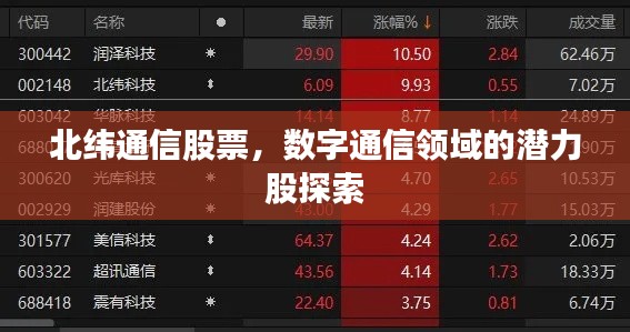北纬通信股票是一家专注于数字通信技术的企业的股票,随着5G、物联网、云计算等技术的普及,北纬通信凭借其技术优势和市场布局,逐渐成为行业内的一支重要力量。