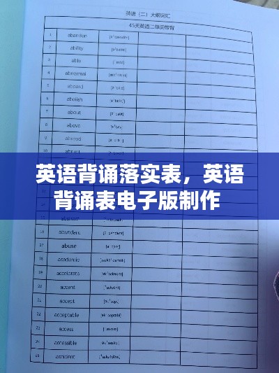 英语学习过程中,背诵是一个不可或缺的环节。它不仅能帮助我们掌握单词和短语,还能加深对语法结构的理解。然而,背诵并非一蹴而就,需要合理的计划和持之以恒的努力。本文将为您介绍一份英语背诵落实表,帮助您更有效地进行英语学习。