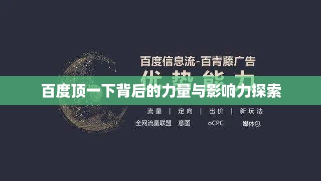 百度“顶一下”背后的力量与影响不容忽视,它既是用户意愿的体现,也是技术进步和平台发展的产物,在未来,我们将继续深入探索和研究“顶一下”背后的力量,为互联网的发展贡献我们的力量。