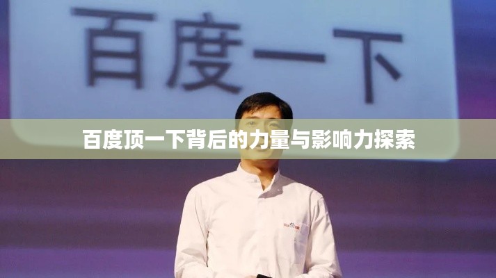 随着互联网的普及,我们每天都在接触各种各样的信息,百度作为中国最大的搜索引擎,已经成为我们获取信息的重要途径之一,而在百度上,我们时常会看到一个熟悉的词汇:“顶一下”,这个“顶一下”究竟是什么意思?它在百度上扮演着怎样的角色?本文将为您深入解析百度“顶一下”背后的力量与影响。