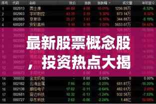 随着科技的不断进步和市场的日益发展,股票投资领域也在不断涌现出新的机会,近年来,“最新股票概念股”成为了投资者们关注的焦点,本文将围绕这一概念股展开讨论,探究其背后的含义、特点以及投资机会。