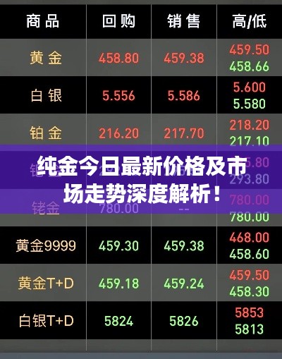 随着全球经济的发展,黄金作为一种重要的贵金属和避险资产,其价格一直备受关注,本文将围绕“纯金价格今日查询最新”这一主题,介绍当前黄金市场的最新价格情况,分析影响黄金价格的因素,并展望未来的市场走势。