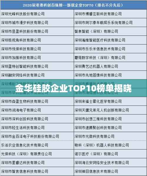 随着科技的不断发展,硅胶制品在各个领域的应用越来越广泛,金华作为中国的硅胶产业重镇,拥有众多的硅胶企业,本文将介绍金华硅胶企业排名前十名,这些企业在硅胶行业中具有较高的知名度和影响力。
