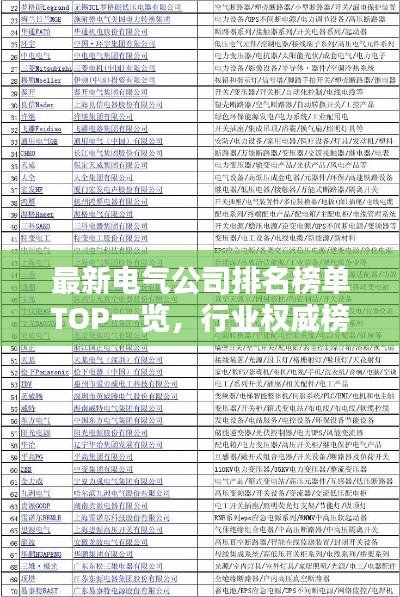 电气行业是现代社会发展的重要支柱,涵盖了电力系统、自动化、电子工程等多个领域,随着科技的进步和工业的发展,电气公司在全球范围内的竞争日益激烈,以下是全球范围内的一些知名电气公司的排名名单大全。