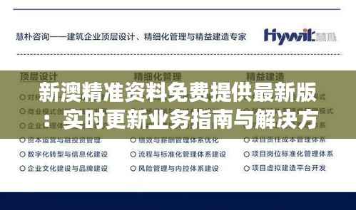 在这个信息爆炸的时代,获取最新的业务指南与解决方案成为了企业与个人至关重要的需求。新澳精准资料免费提供最新版:实时更新业务指南与解决方案旨在满足这一需求,为广大用户提供具有时效性、准确性的业务信息。本文将详细介绍该资料的具体内容、特点以及使用方法,帮助用户更好地利用这一资源。