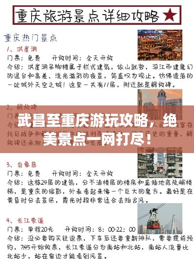 从武昌到重庆的旅程充满了美丽的风景和丰富的文化体验,在行程中,请务必注意安全和环保,尽情享受这段美好的旅程,希望本攻略能为您的旅行提供有益的参考,祝您旅途愉快!