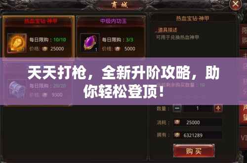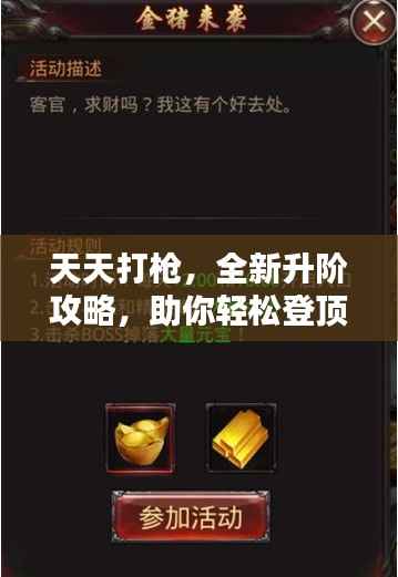 在《天天打枪》的世界里,不断提升自己的实力是非常重要的,通过角色升级、武器升阶、技能提升、装备选择以及游戏策略和技巧的学习,玩家可以在游戏中取得更好的成绩,参与游戏内的活动,可以获得更多奖励,提升自己的实力,希望本文的攻略对大家有所帮助,祝大家游戏愉快!