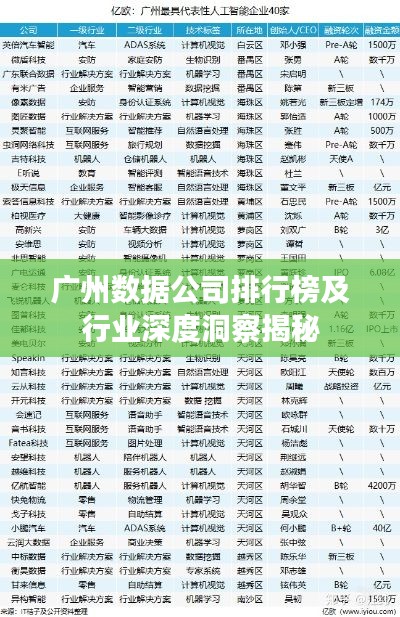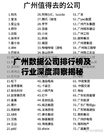 随着信息技术的飞速发展,数据产业已成为当今社会的核心驱动力之一,在广州这座充满活力的现代化城市中,数据公司如雨后春笋般涌现,为这座城市的数字经济发展注入了强大的活力,本文将为您带来广州数据公司的排名及相关行业洞察。