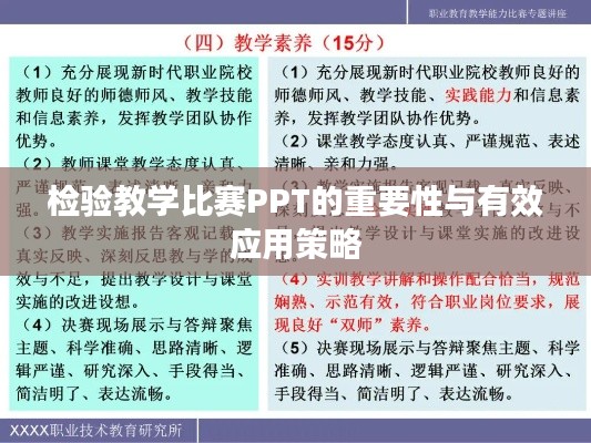 在现代教育背景下,教学比赛已成为提升教师技能、促进教学交流的重要途径,而PPT作为展示教学思想、教学内容和教学策略的重要工具,其制作质量直接关系到教学效果和比赛成绩,如何检验教学比赛PPT的质量,并对其进行有效应用,就显得尤为重要。