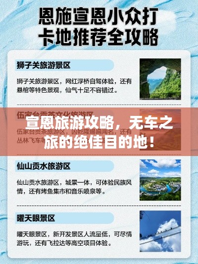 宣恩,一个位于湖北省恩施州的小县城,以其得天独厚的自然风光和丰富的民族文化吸引着越来越多的游客,没有车辆的游客可能会感到困惑,不知道如何在这个地方畅游,本文将为您提供一份详尽的宣恩旅游攻略,让您在无车之旅中尽情享受宣恩的美景。