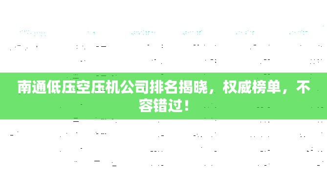 随着工业领域的不断发展,空压机作为重要的动力设备之一,其市场需求不断增长,在南通地区,不少空压机公司迅速崛起,为广大客户提供优质的产品和服务,本文将介绍南通低压空压机公司的排名,以便客户更好地了解当地空压机市场。