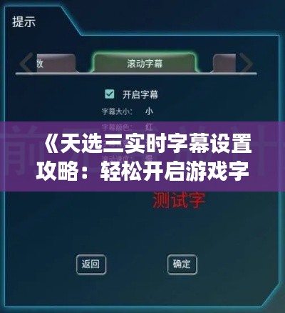 标题:《天选三实时字幕设置攻略:轻松开启游戏字幕功能》