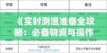 标题:《实时测温准备全攻略:必备物资与操作指南》