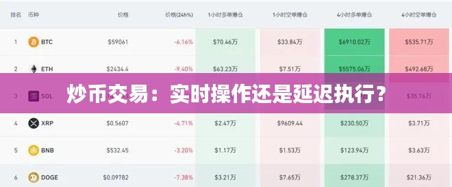 炒币交易可以是实时交易,也可以是延迟执行。投资者在选择交易平台和交易方式时,应根据自身需求和市场行情进行综合考虑。在进行炒币交易时,要注意风险控制,理性投资。