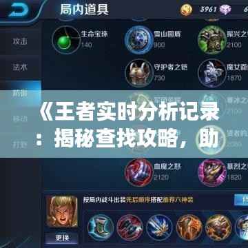 标题:《王者实时分析记录:揭秘查找攻略,助你提升游戏技巧》