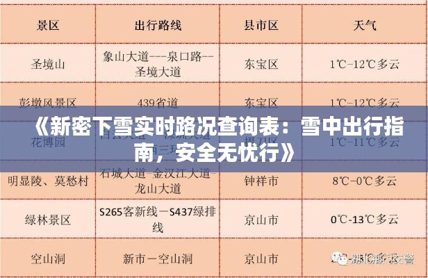 标题:《新密下雪实时路况查询表:雪中出行指南,安全无忧行》