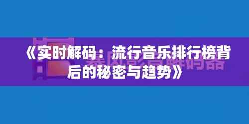 标题:《实时解码:流行音乐排行榜背后的秘密与趋势》