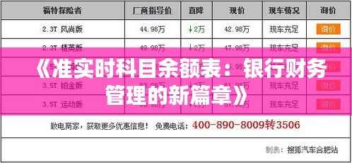 标题:《准实时科目余额表:银行财务管理的新篇章》