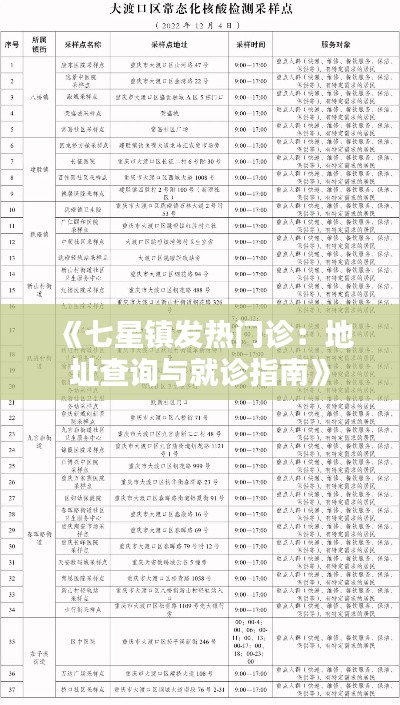 标题:《七星镇发热门诊:地址查询与就诊指南》