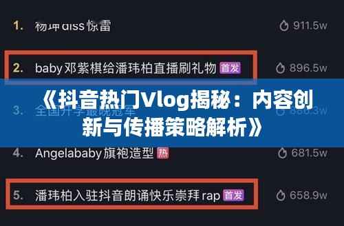 标题:《抖音热门Vlog揭秘:内容创新与传播策略解析》