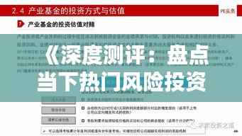 标题:《深度测评:盘点当下热门风险投资机构》