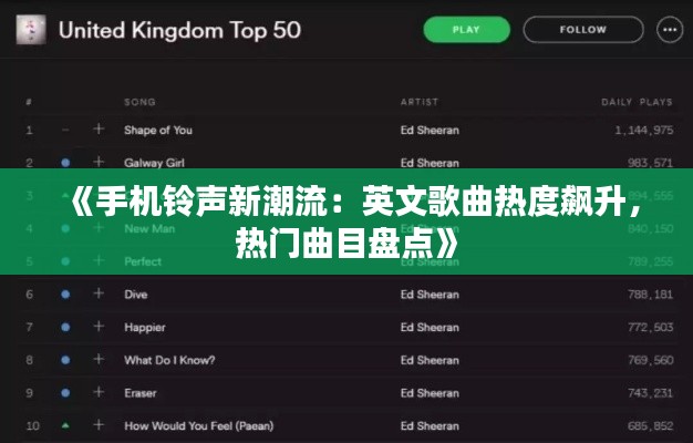 标题:《手机铃声新潮流:英文歌曲热度飙升,热门曲目盘点》