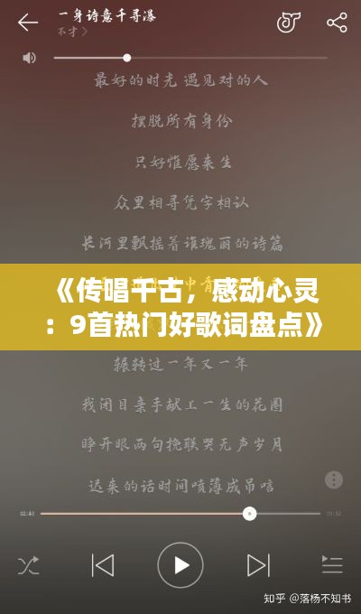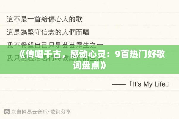 标题:《传唱千古,感动心灵:9首热门好歌词盘点》