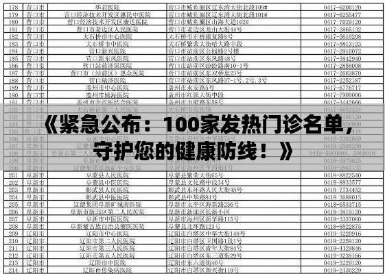 标题:《紧急公布:100家发热门诊名单,守护您的健康防线!》