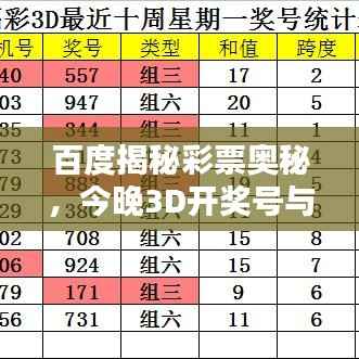 随着科技的进步和互联网的普及,越来越多的人开始关注彩票开奖信息,今晚,你是否也在期待着那一组幸运的数字组合呢?“百度一下今晚3D开奖号试机号”,让我们一起揭开彩票的神秘面纱。