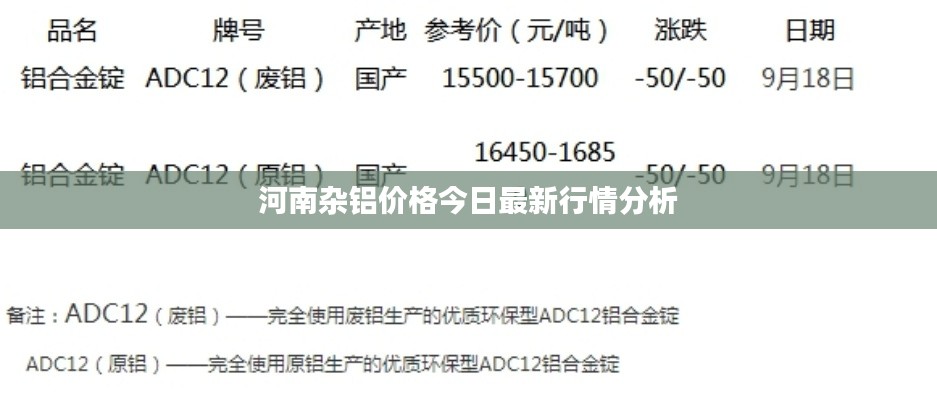 随着全球经济的复苏和铝市场的繁荣,河南杂铝价格近期呈现出一定的波动趋势,本文将围绕“河南杂铝价格最新行情今日”这一主题,对河南地区的杂铝价格进行深度剖析,帮助读者了解当前市场动态。