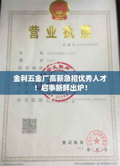 随着业务的不断扩展和市场需求的日益增长,金利五金厂现面向社会广泛招募各类优秀人才,欢迎有志之士加入我们的团队,共同创造更加辉煌的未来。