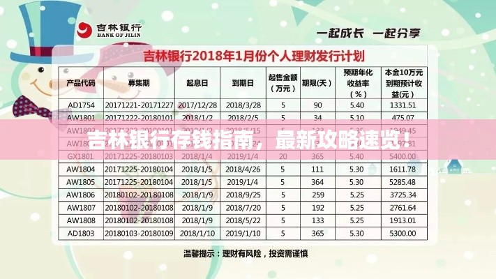 随着金融市场的不断发展和创新,银行存款方式及优惠政策也在不断变化,对于想要在吉林银行存钱的客户来说,了解最新的存款攻略显得尤为重要,本文将为您提供一份详尽的吉林银行存钱攻略,帮助您更好地规划个人财务,实现资产增值。