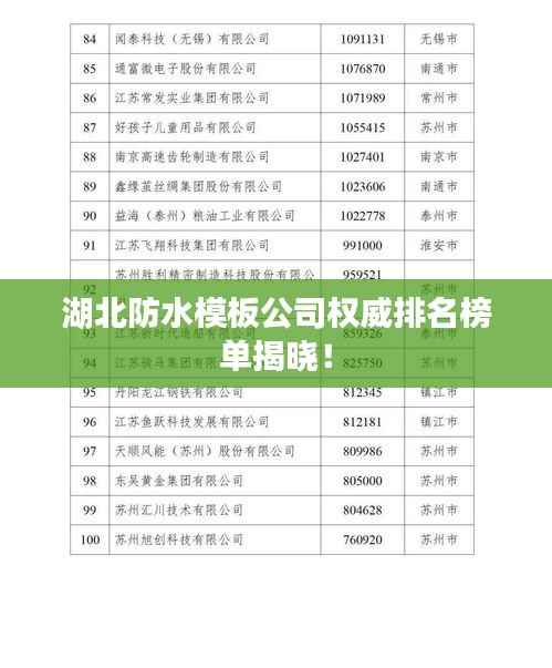 随着建筑行业的蓬勃发展,防水模板行业也在不断进步,湖北地区作为中国的经济重镇,拥有众多的防水模板公司,它们以质量、服务、创新为核心竞争力,为广大建筑项目提供优质的防水模板产品和服务,本文将介绍湖北地区的防水模板公司排名,以便大家更好地了解这一行业。
